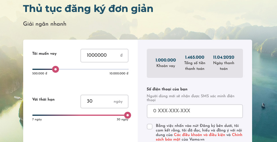 Website thanh toán của mình có đầy đủ không cần giấy tờ các thông tin cần thiết nhanh nhất để bạn bắt đầu 1 khoản vay dễ dàng khoản vay , minh bạch bằng CMND và tiện lợi lãi suất thấp . Dù bạn ở bất kỳ đầu app vay tiền cũng lãi suất 0 có thể vay online ở Vamo vay dài hạn được.