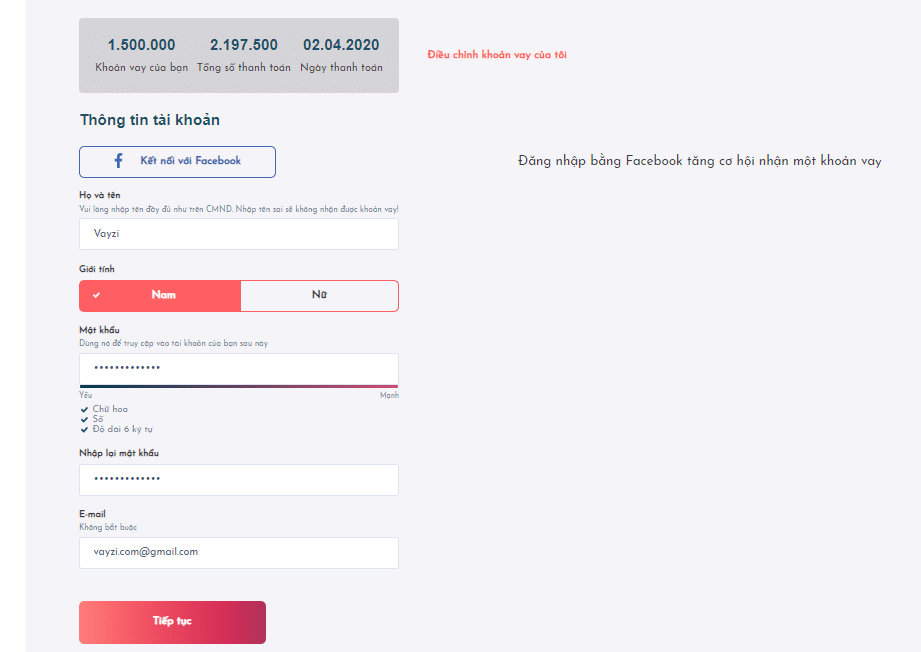 Lúc này bạn điền thông tin cá nhân vào không thế chấp để đăng ký không lãi suất , bạn nơi nào có thể kết nối lãi suất bao nhiêu với Fb chỉ cần CMND , app vay tiền nhưng mình thấy tín dụng các bạn vay dài hạn có thể đăng ký vay bằng tay miễn phí lãi suất thì tốt hơn là kết nối trực tiếp như thế vay tiền gấp nhé