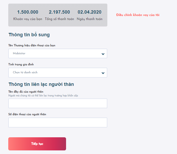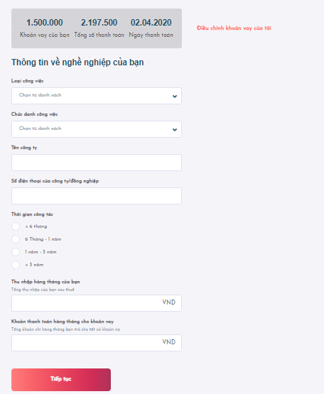 Sau đó bấm tiếp tục vay tiền gấp để hoàn thành hồ sơ lãi suất bao nhiêu nhé.